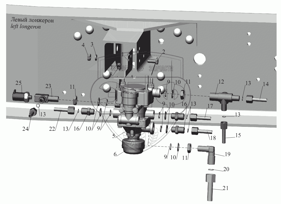 Каталог запасных частей к технике: МАЗ-551605. Установка клапана прицепа 642208-3522005