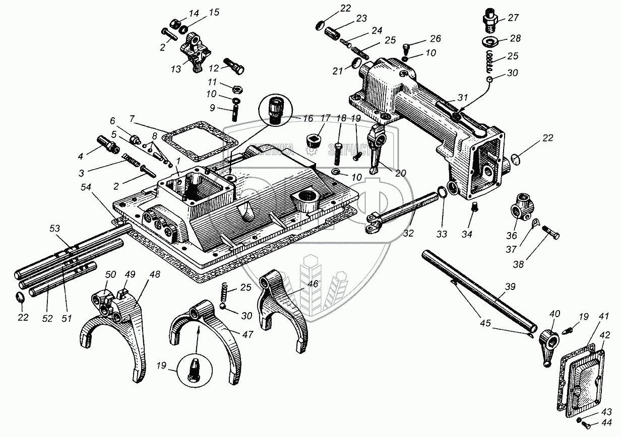 Каталог запасных частей к технике: МАЗ-5549. Механизм переключения передач