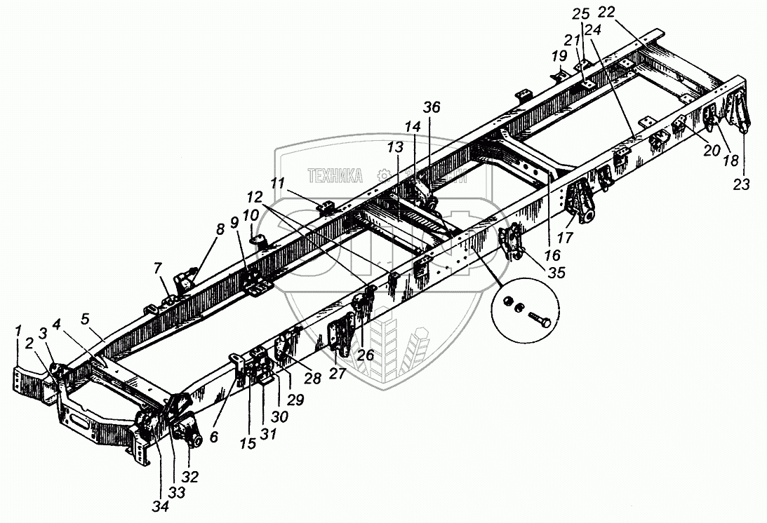 | 13 | 5335-2801152 | Поперечина № 2 рамы в сборе | Нет на складе | |