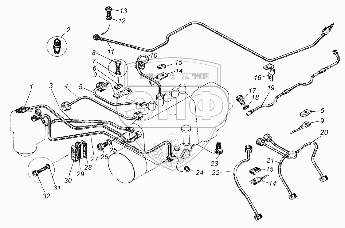Каталог запасных частей к технике: МАЗ-5549. Топливные трубопроводы двигателя ЯМЗ-236