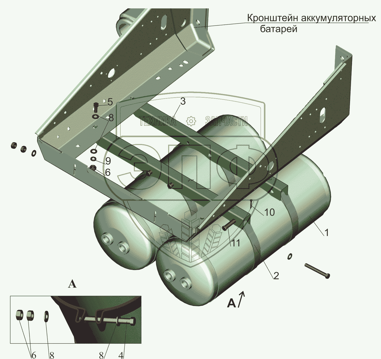 Каталог запасных частей к технике: МАЗ-5550V3 (V5). Крепление ресиверов 534003-3513004