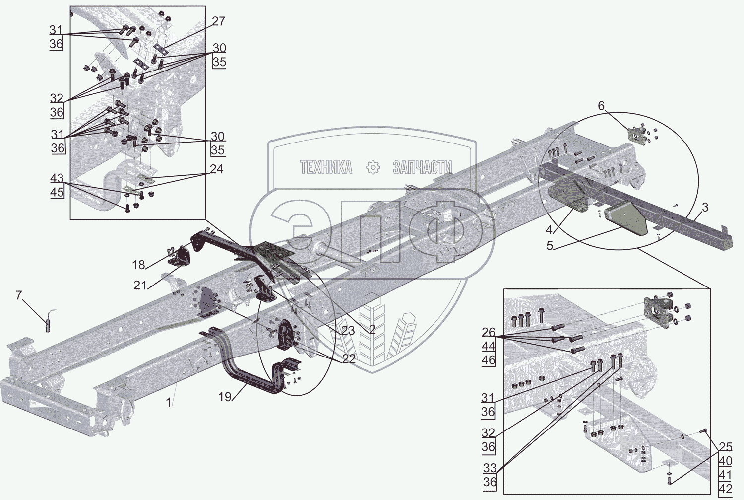 Каталог запасных частей к технике: МАЗ-5550V3 (V5). Рама 5550V3-2800010-000
