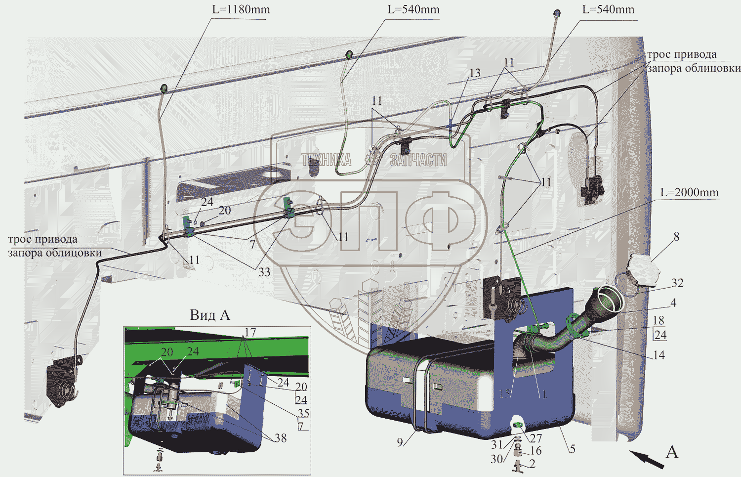 Каталог запасных частей к технике: МАЗ-5550V3 (V5). Установка омывателя 6430-5200008