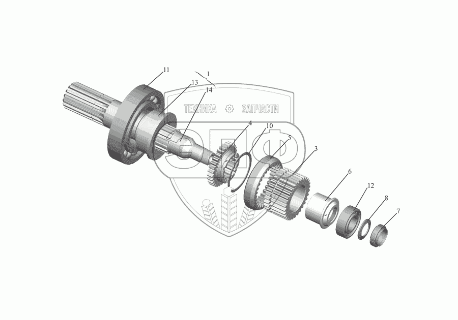 | 12 | 12507КМ | Подшипник роликовый выходного вала, передний | Нет на складе | |