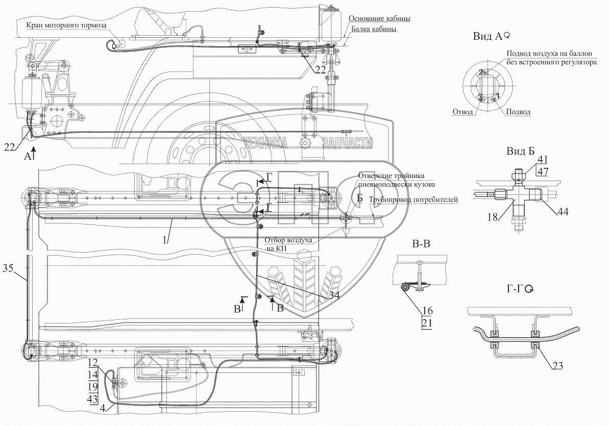 Каталог запасных частей к технике: МАЗ-631019. Пневмопитание подвески кабины 643019-5001930
