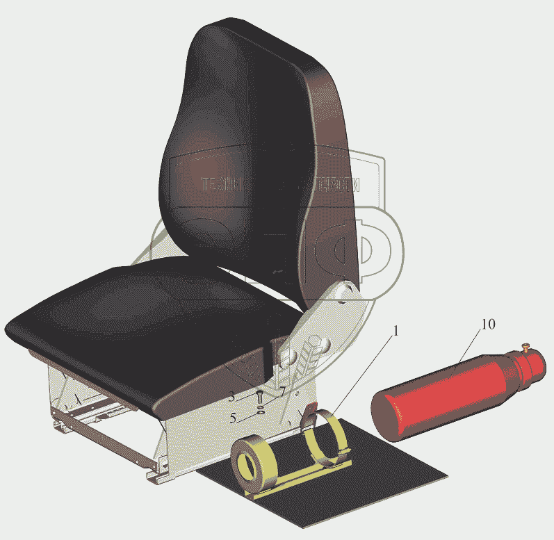 Каталог запасных частей к технике: МАЗ-631019. Установка огнетушителя 6501-3910040