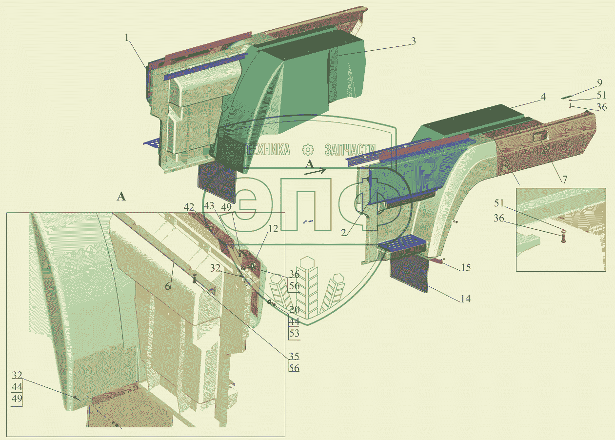 Каталог запасных частей к технике: МАЗ-631019. Установка оперения 6431-8400020-010