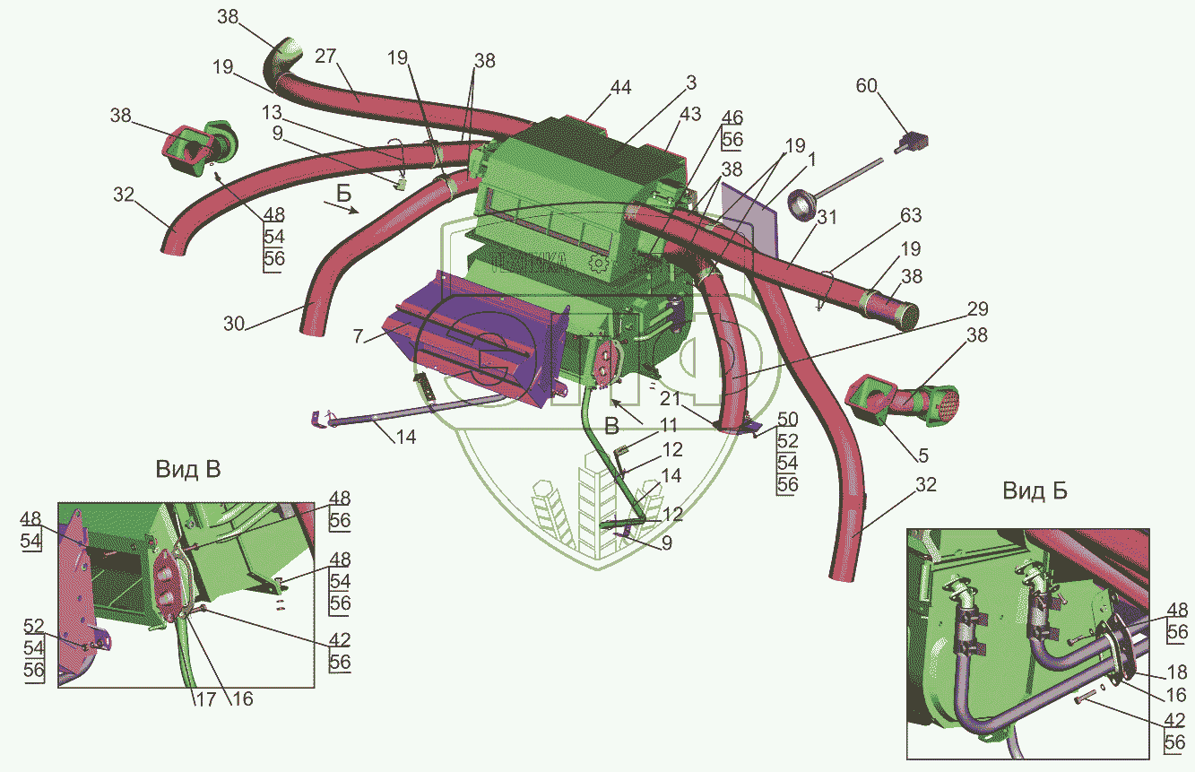 Каталог запасных частей к технике: МАЗ-631019. Установка отопителя 631019-8100001-010