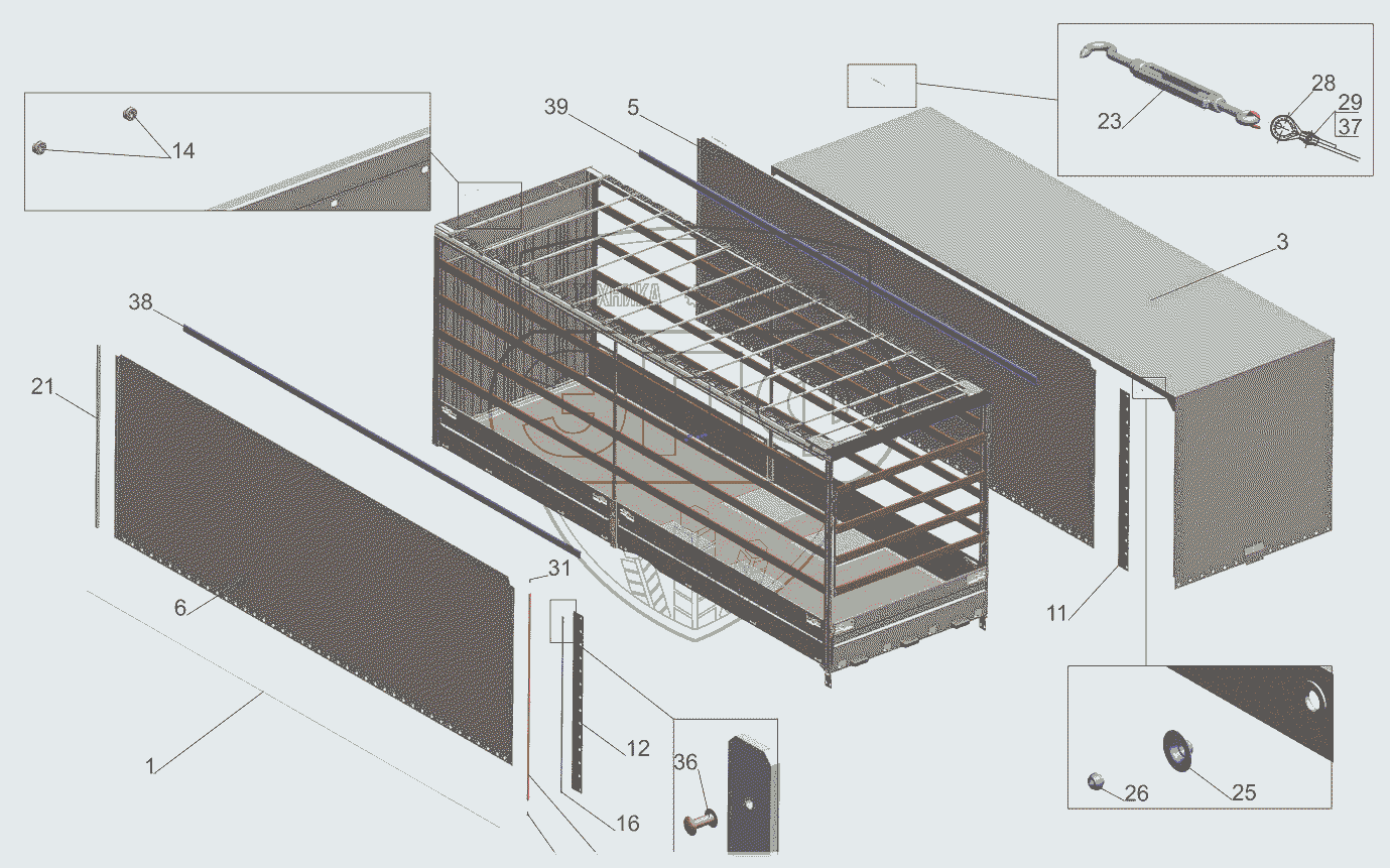 Каталог запасных частей к технике: МАЗ-631019. Установка тента 6310E9-8500004-010