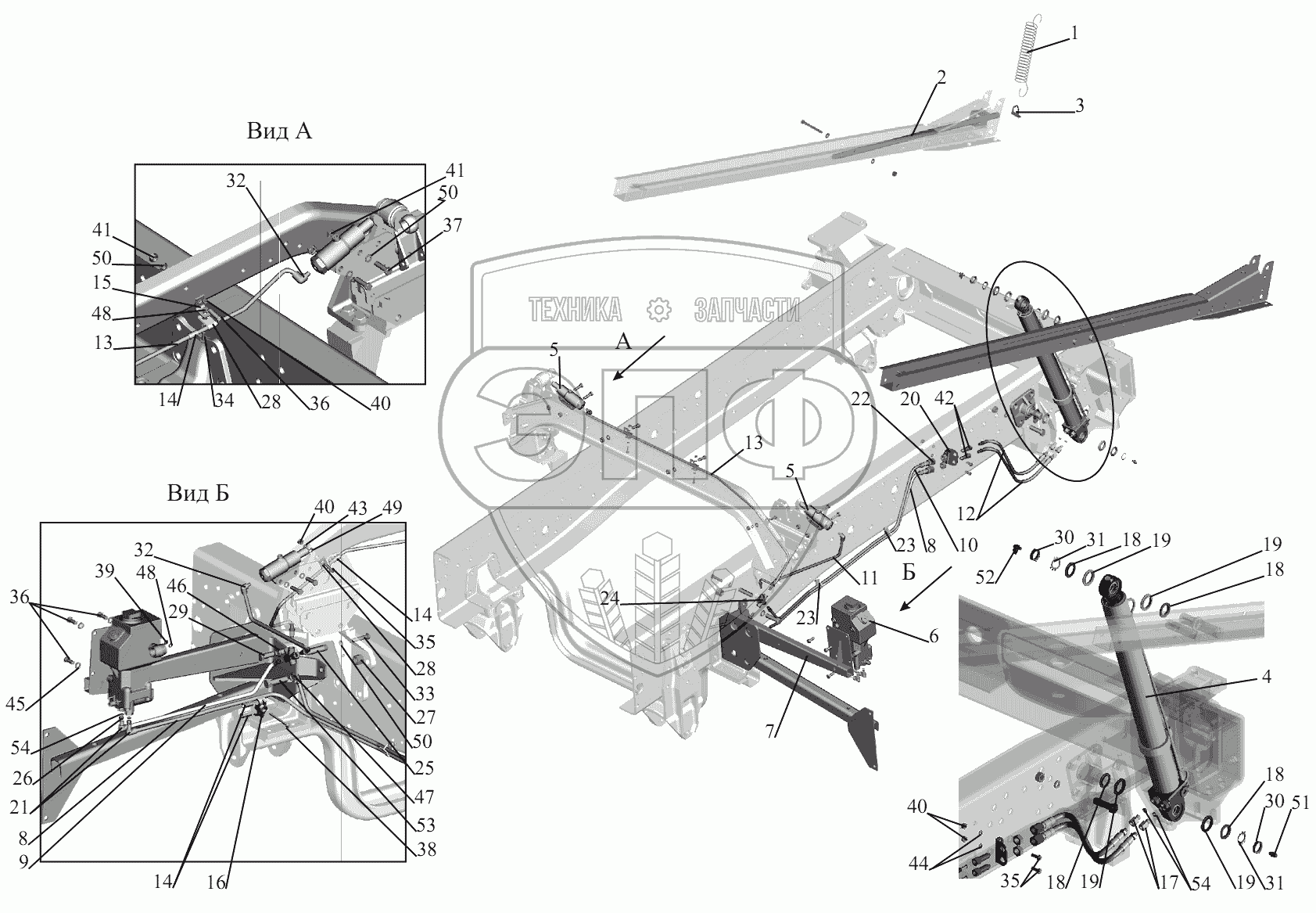 Каталог запасных частей к технике: МАЗ-631236. Механизм подъема кабины