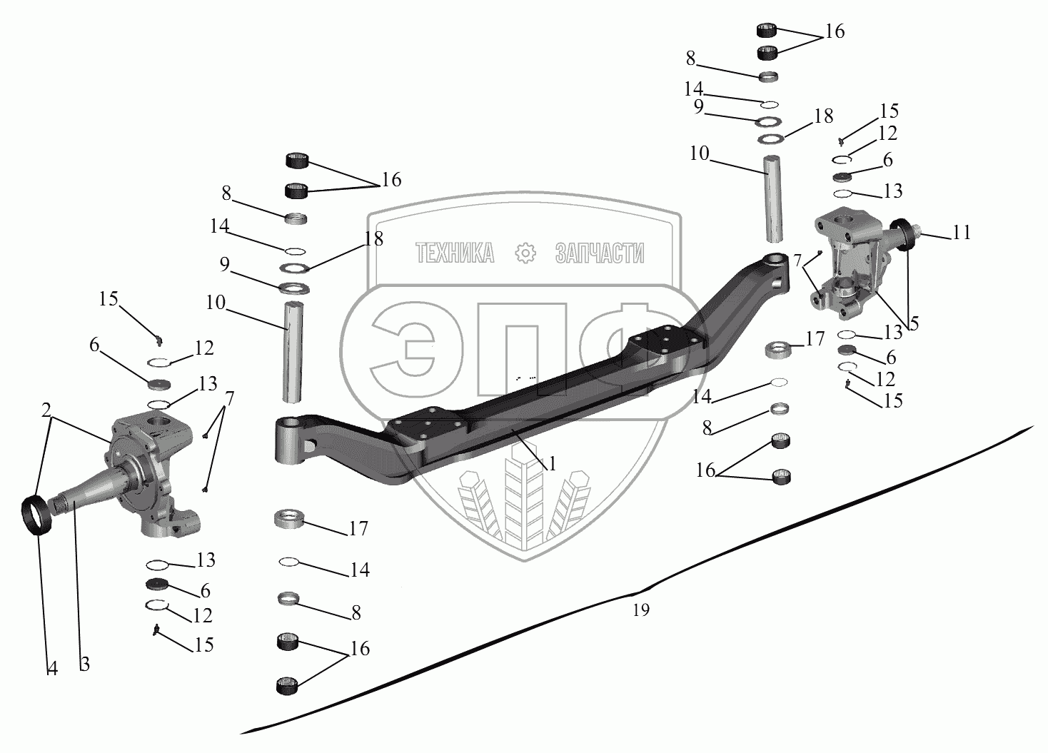 Каталог запасных частей к технике: МАЗ-631236. Передняя ось (рис.2)