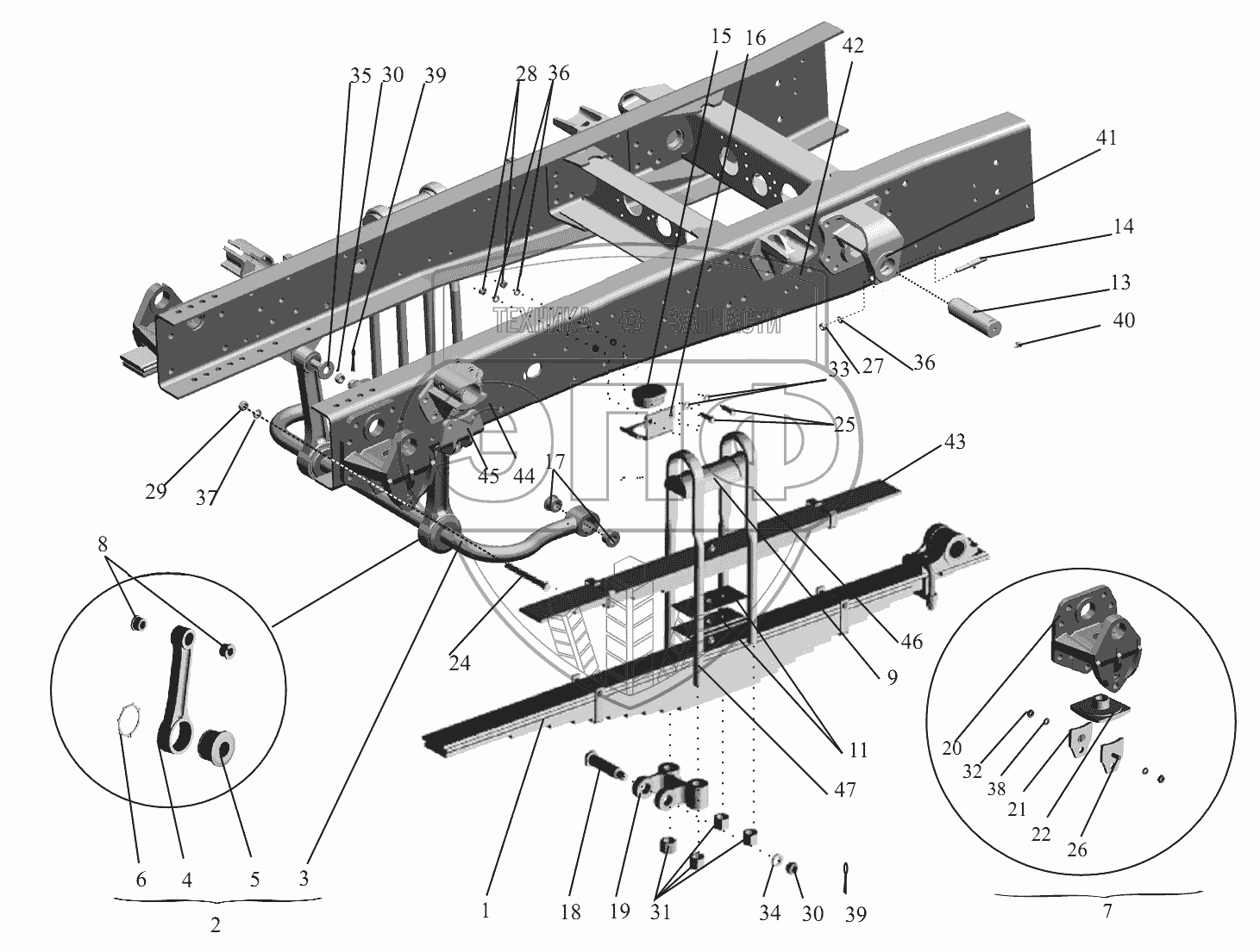 Каталог запасных частей к технике: МАЗ-631236. Подвеска задняя 5550-2900002