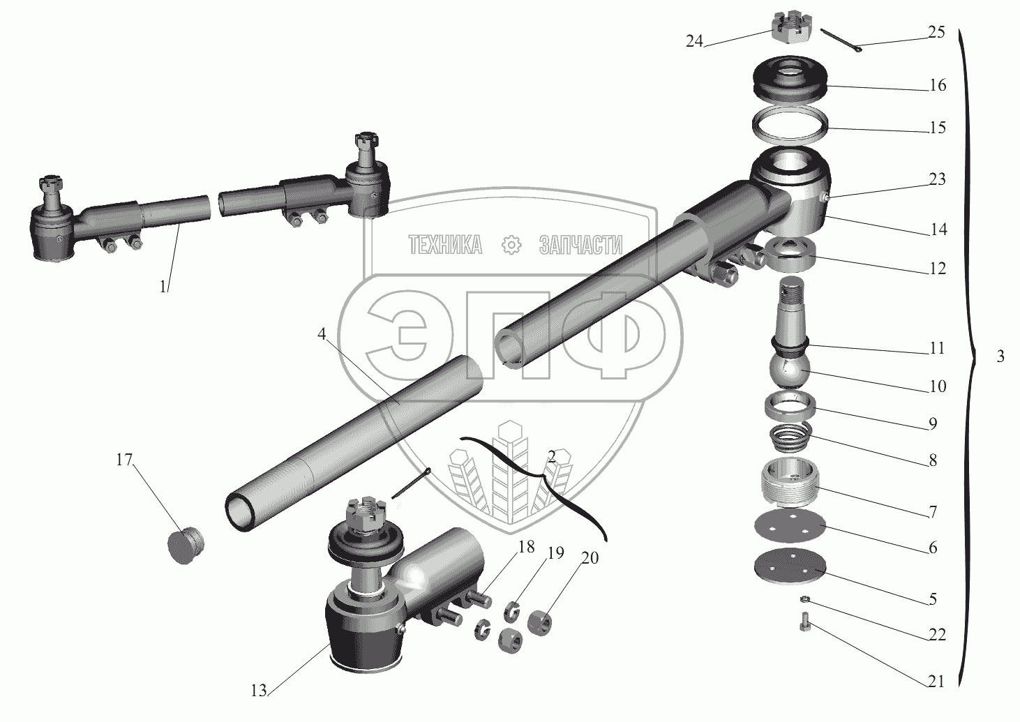 Каталог запасных частей к технике: МАЗ-631236. Тяга поперечная рулевая 64221-3003052