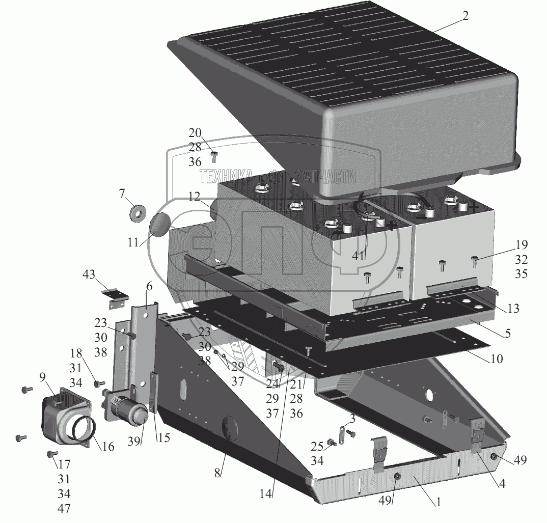 Каталог запасных частей к технике: МАЗ-631236. Установка аккумуляторных батарей