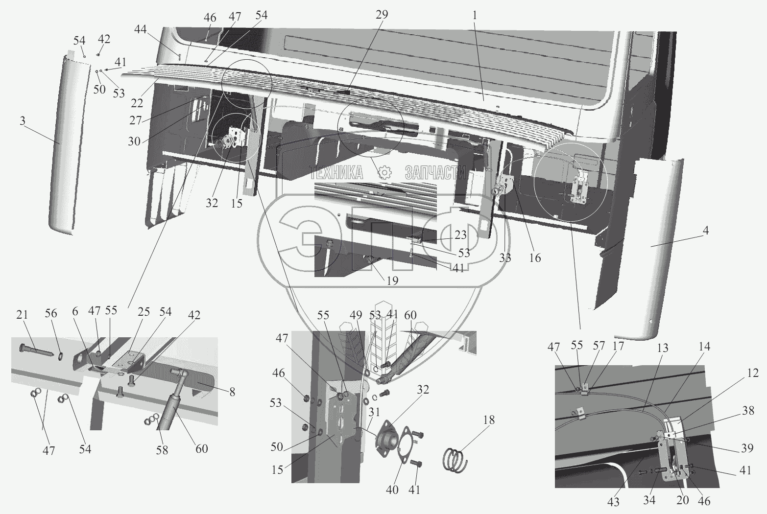 Каталог запасных частей к технике: МАЗ-631236. Установка облицовки передка 6430-8400018