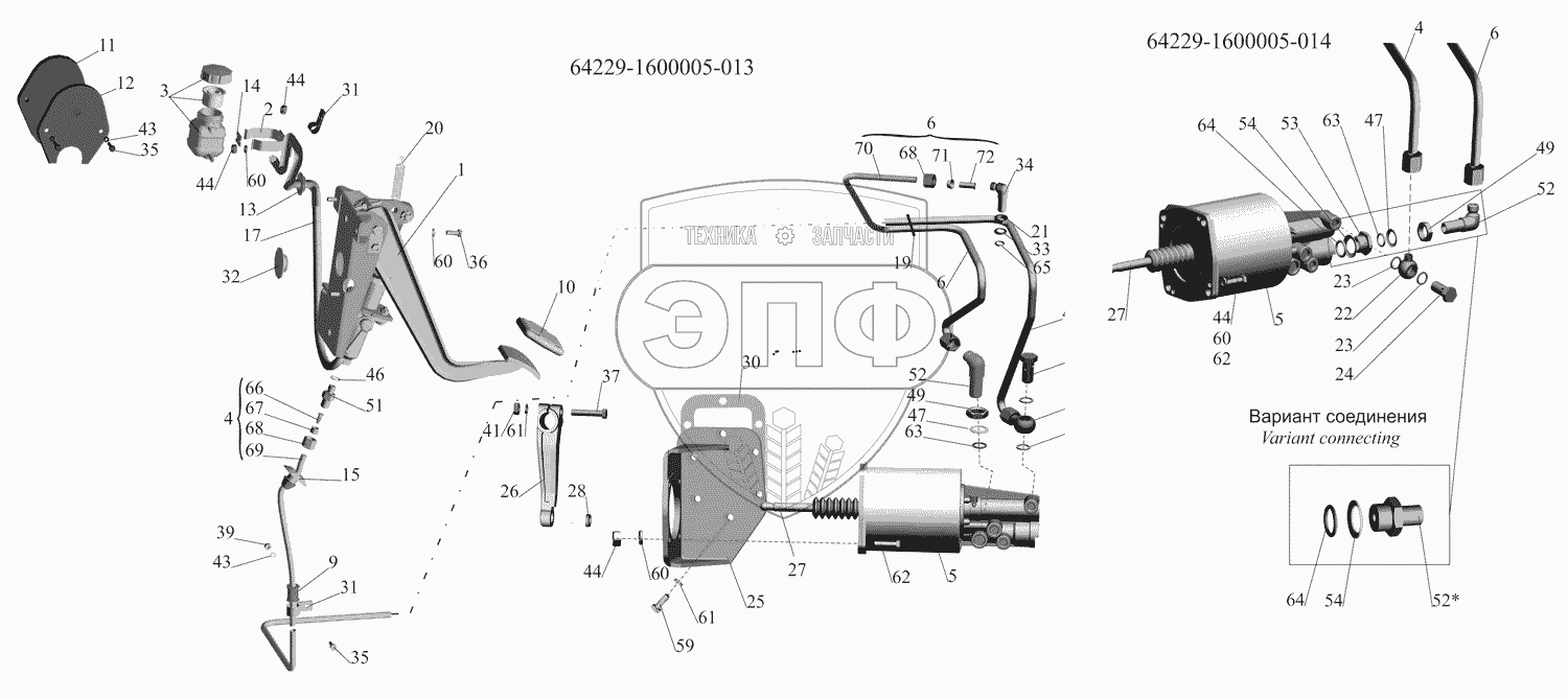 Каталог запасных частей к технике: МАЗ-631705. Механизм управления сцеплением