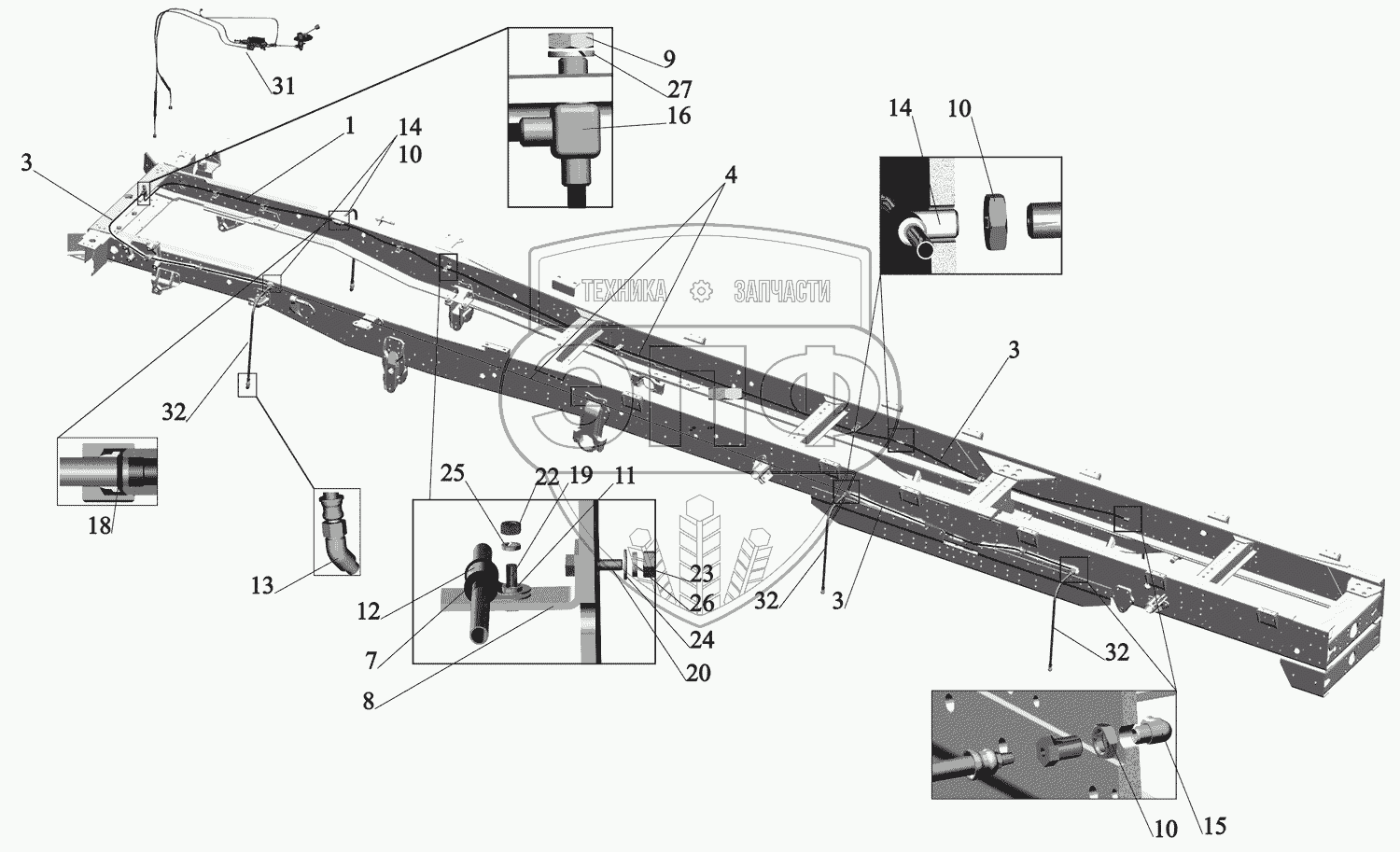 Каталог запасных частей к технике: МАЗ-631705. Установка накачки шин
