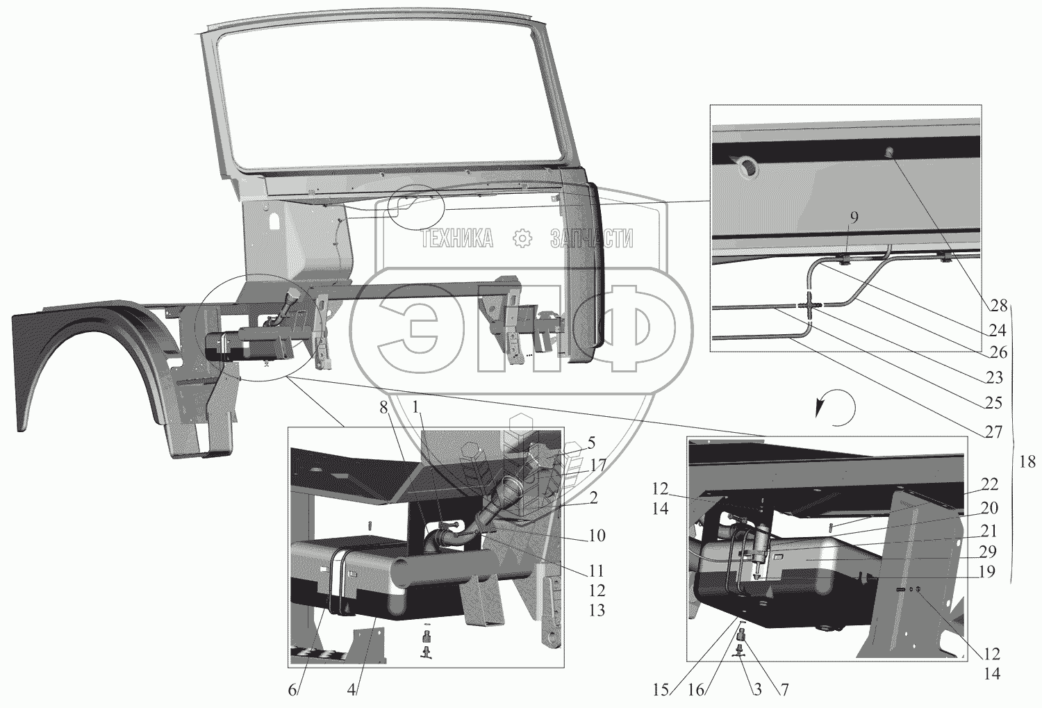 Каталог запасных частей к технике: МАЗ-631705. Установка омывателя 64221-5200008-01
