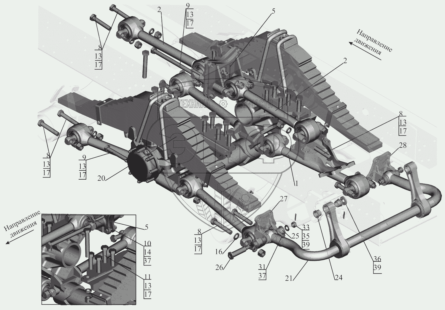 Каталог запасных частей к технике: МАЗ-631705. Установка подвески задней