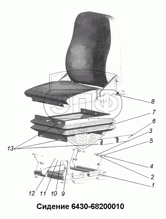 Каталог запасных частей к технике: МАЗ-631705, 631708. Сиденья\Сидение 6430-6800010