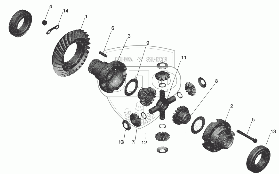 Каталог запасных частей к технике: МАЗ-6422. Редуктор заднего моста. Дифференциал