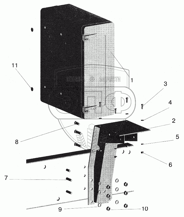 Каталог запасных частей к технике: МАЗ-6422. Установка инструментального ящика