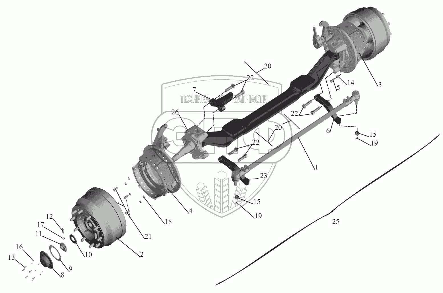 Каталог запасных частей к технике: МАЗ-6422, 5432. Передняя ось 543265-3000015