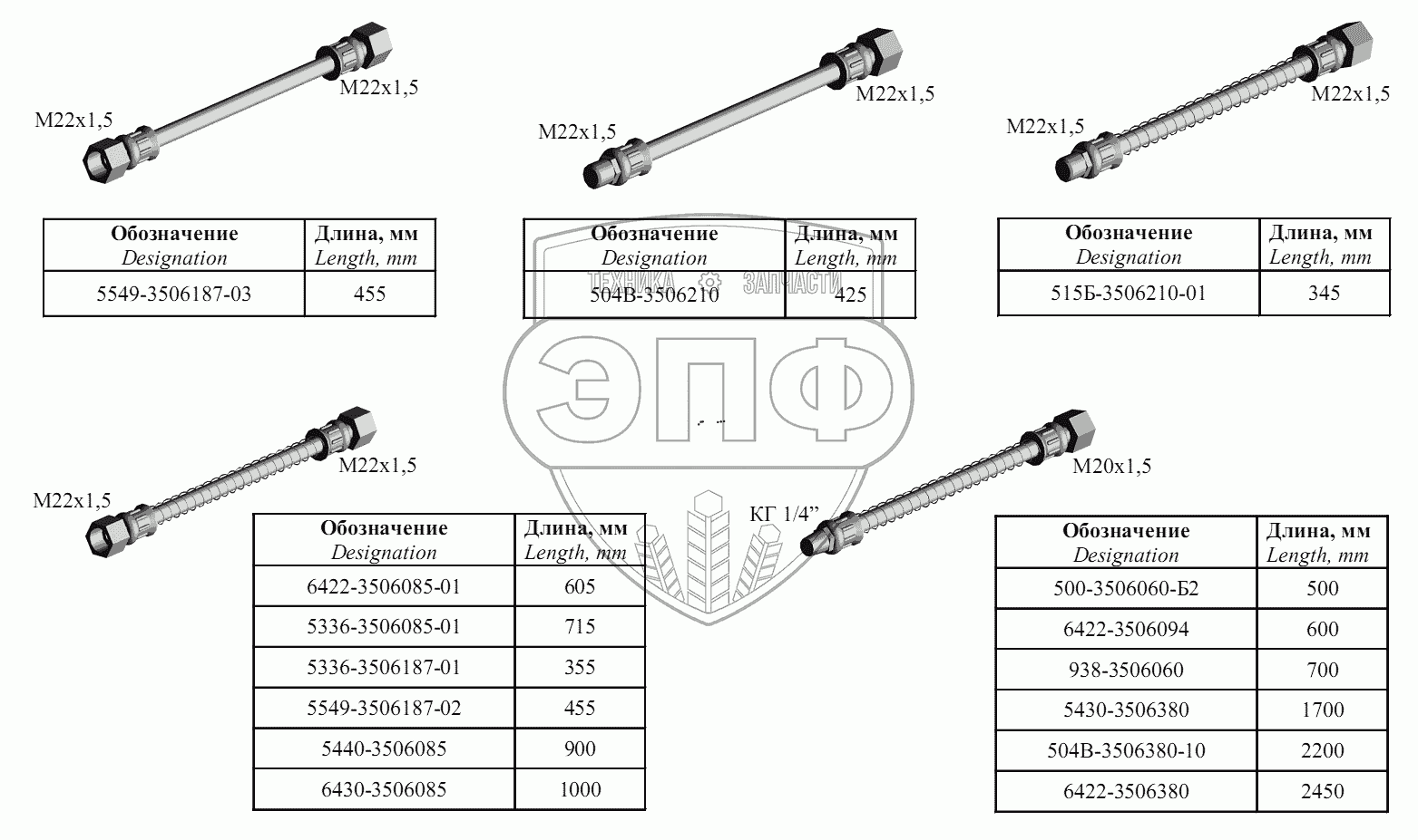 Каталог запасных частей к технике: МАЗ-6422, 5432. Шланги