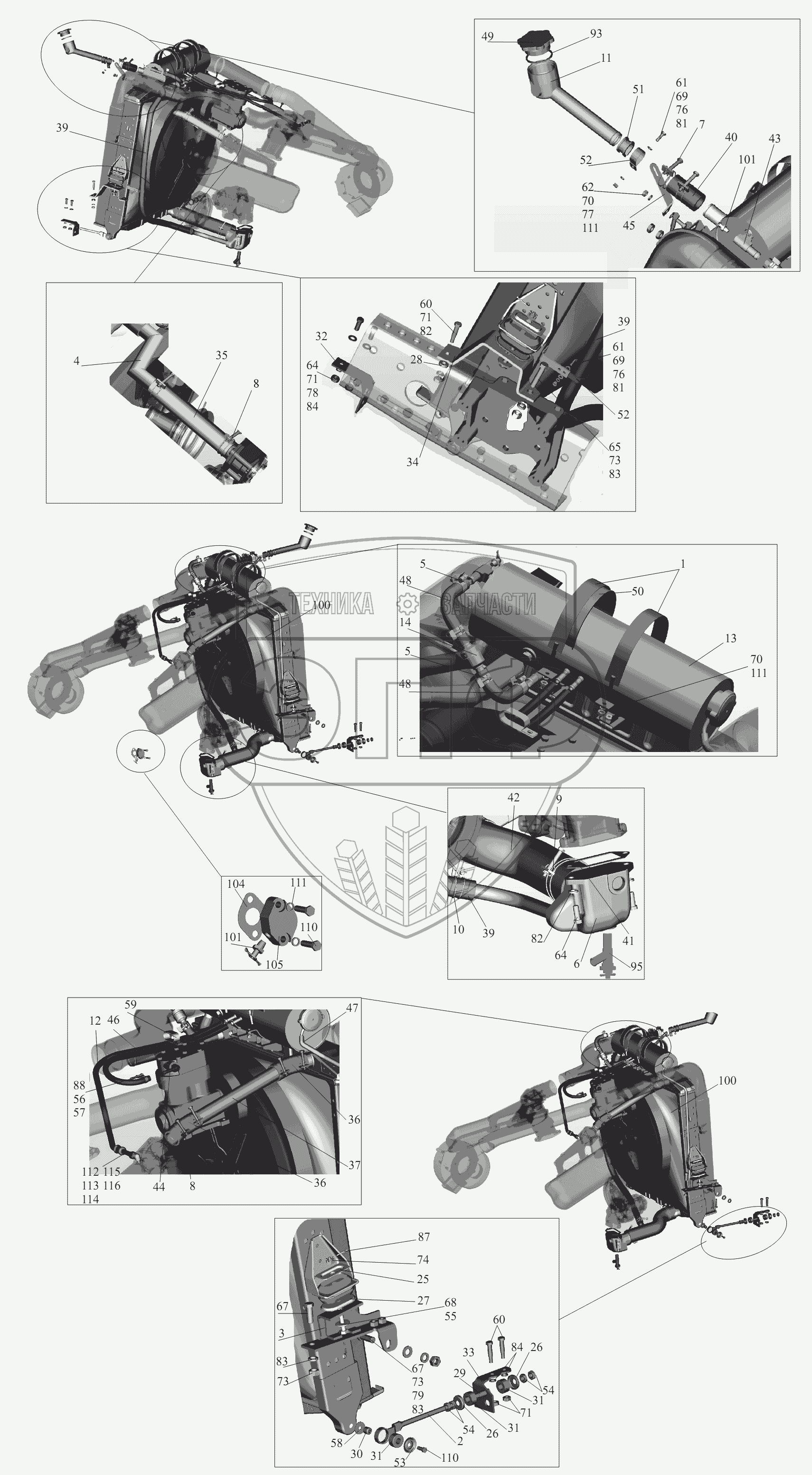 Каталог запасных частей к технике: МАЗ-6422, 5432. Установка системы охлаждения