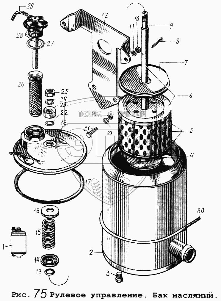 Каталог запасных частей к технике: МАЗ-64255. Рулевое управление. Бак масляный