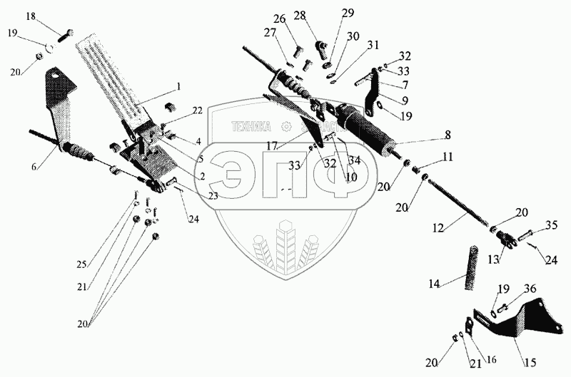 Каталог запасных частей к технике: МАЗ-643068. Привод подачи топлива