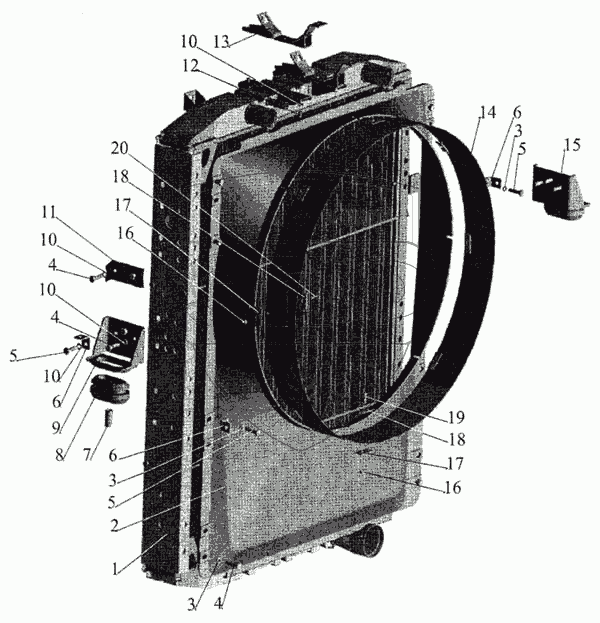 Каталог запасных частей к технике: МАЗ-643068. Радиатор с кожухом