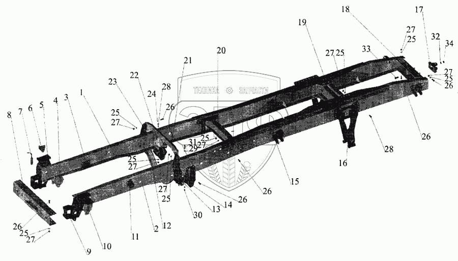 Каталог запасных частей к технике: МАЗ-643068. Рама 6430-пневмоподвеска