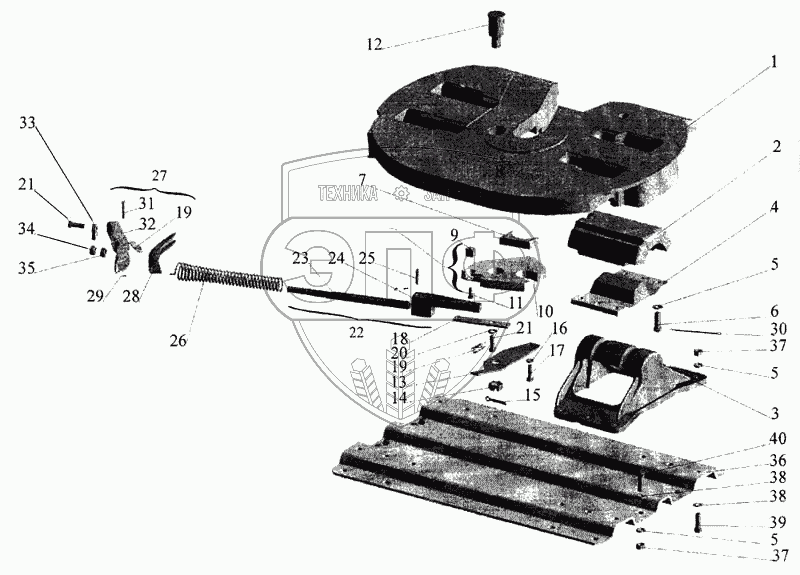 Каталог запасных частей к технике: МАЗ-643068. Седельно-сцепное устройство