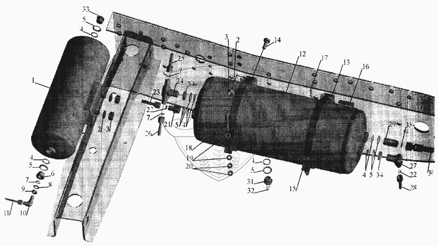Каталог запасных частей к технике: МАЗ-643068. Установка ресиверов и присоединительной арматуры