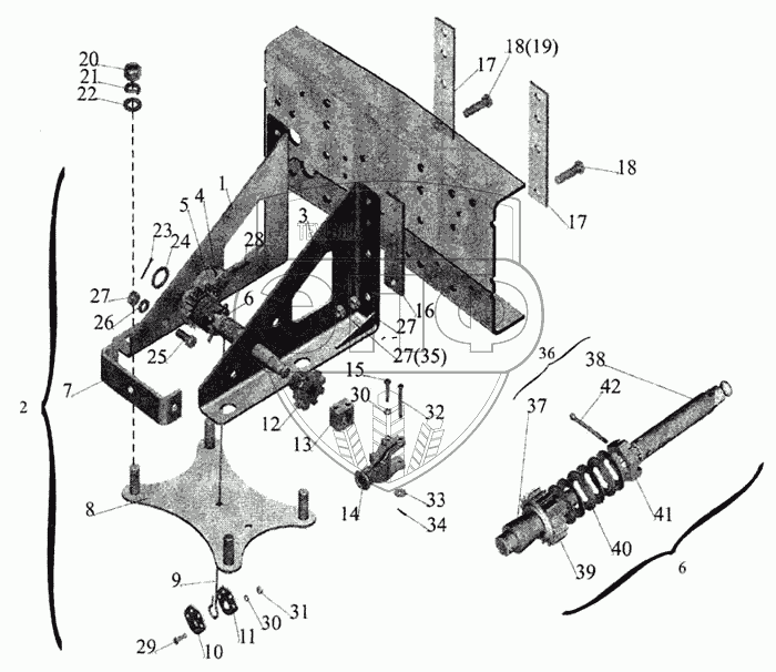 Каталог запасных частей к технике: МАЗ-643068. Установка запасного колеса