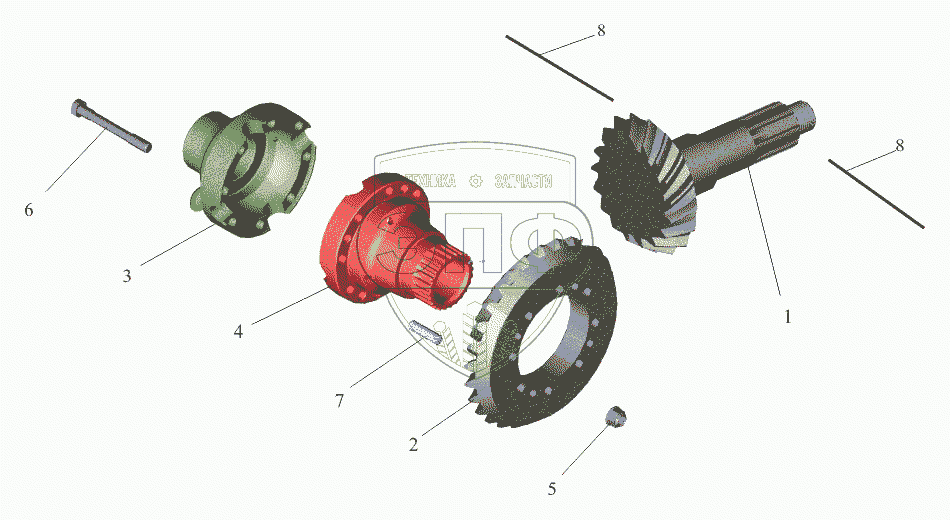 Каталог запасных частей к технике: МАЗ-650108. Шестерни ведущая и ведомая (комплект для запчастей) 54323-2402020