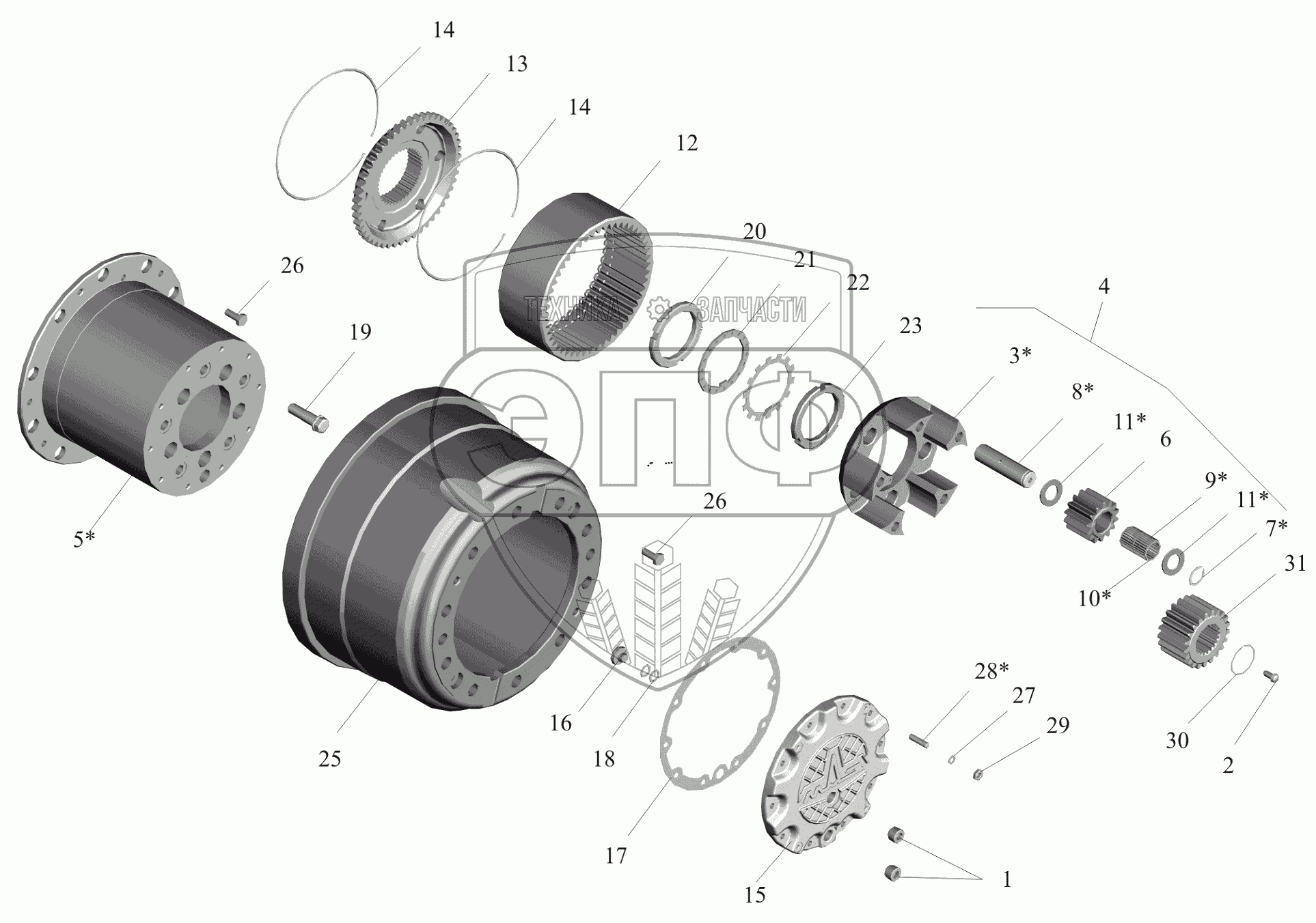 Каталог запасных частей к технике: МАЗ-650119. Колесный редуктор