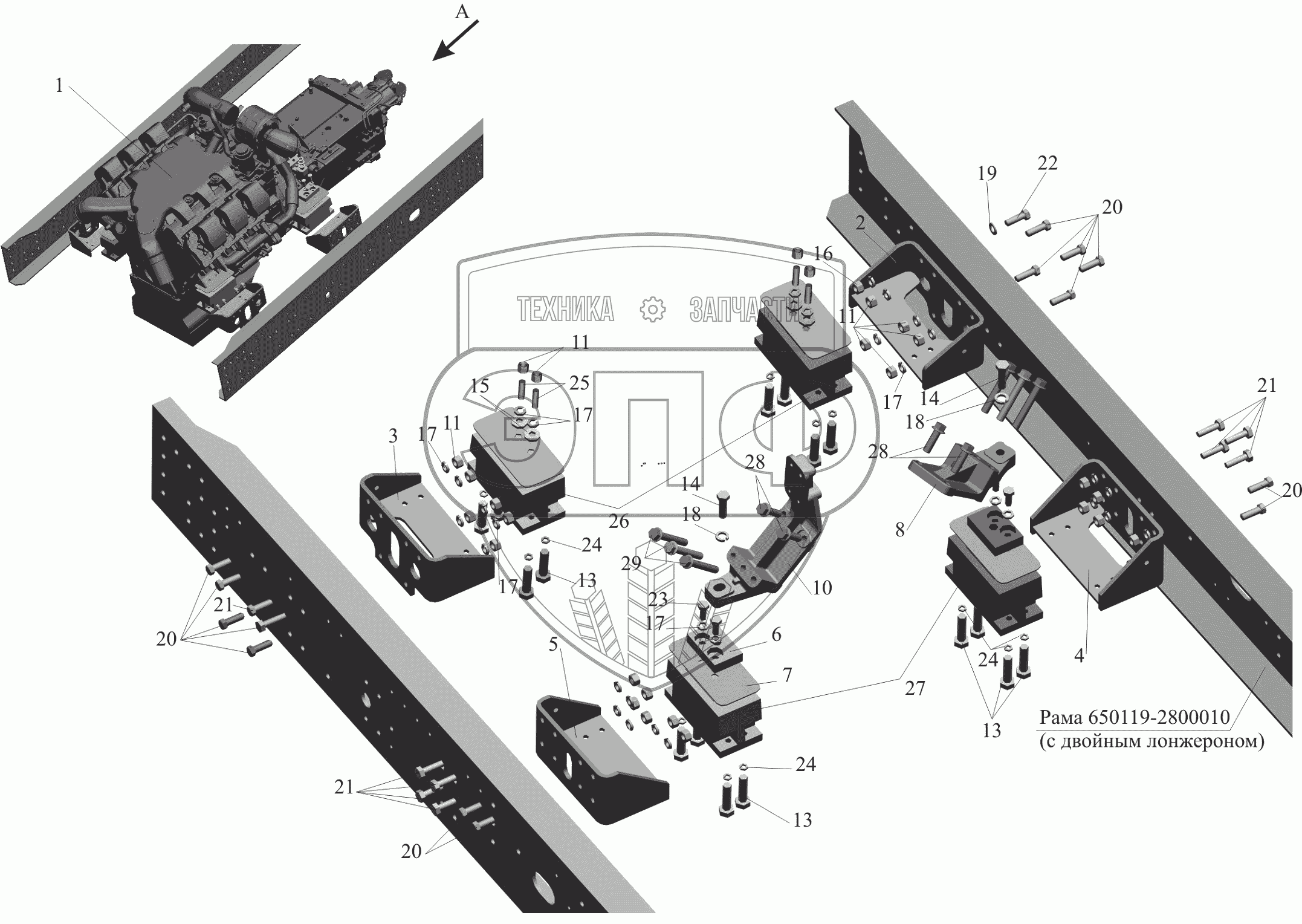 Каталог запасных частей к технике: МАЗ-650119. Крепление двигателя