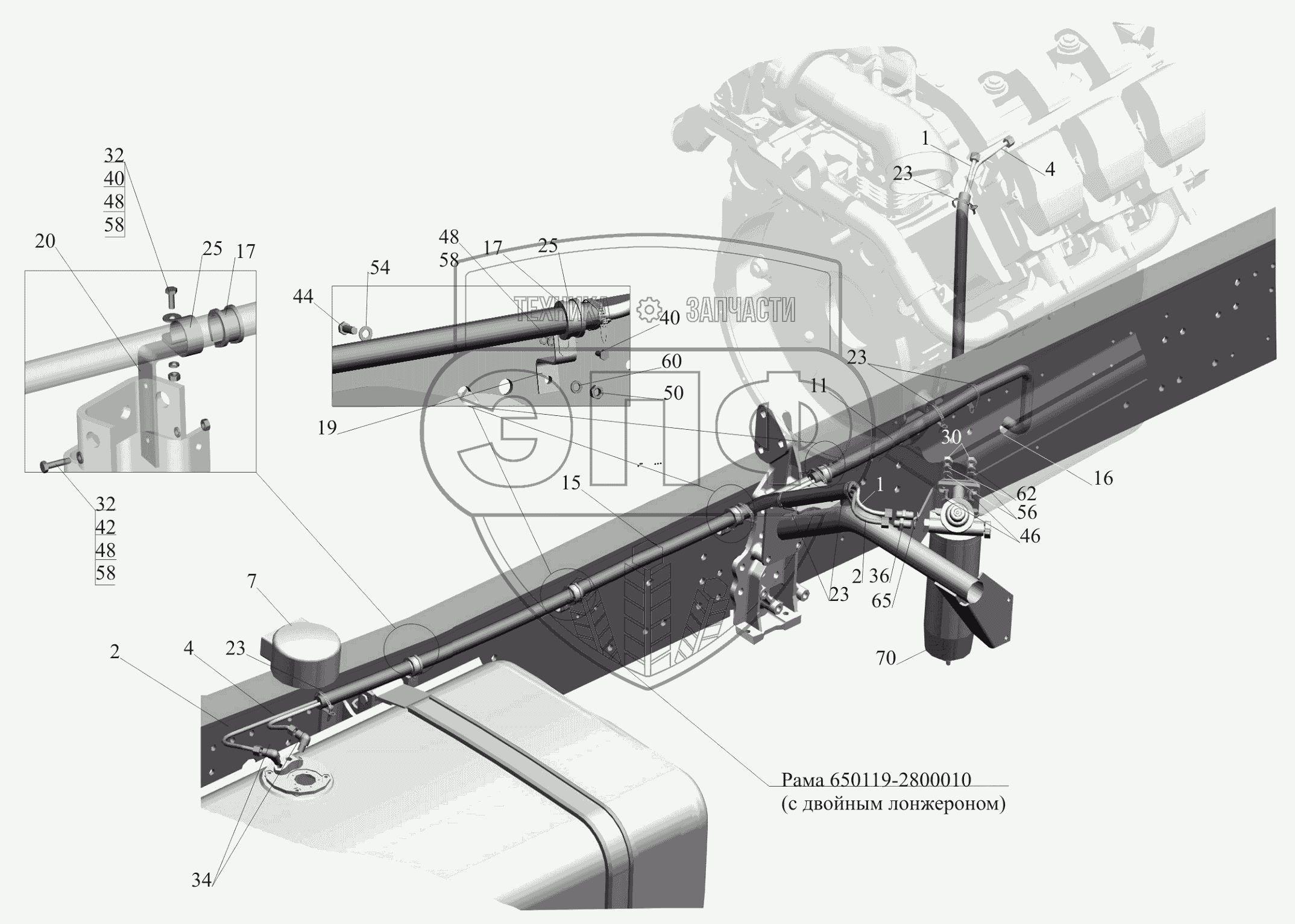 Каталог запасных частей к технике: МАЗ-650119. Крепление топливопроводов 650119-1104002-010