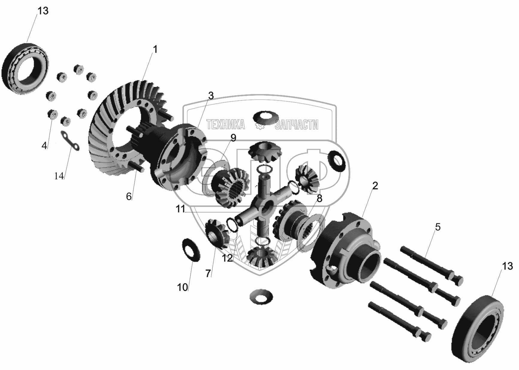 Каталог запасных частей к технике: МАЗ-650119. Редуктор заднего моста. Дифференциал