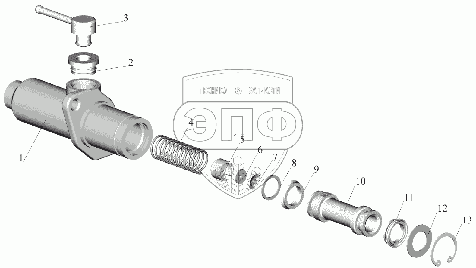 Каталог запасных частей к технике: МАЗ-650119. Цилиндр подпедальный 6430-1602510