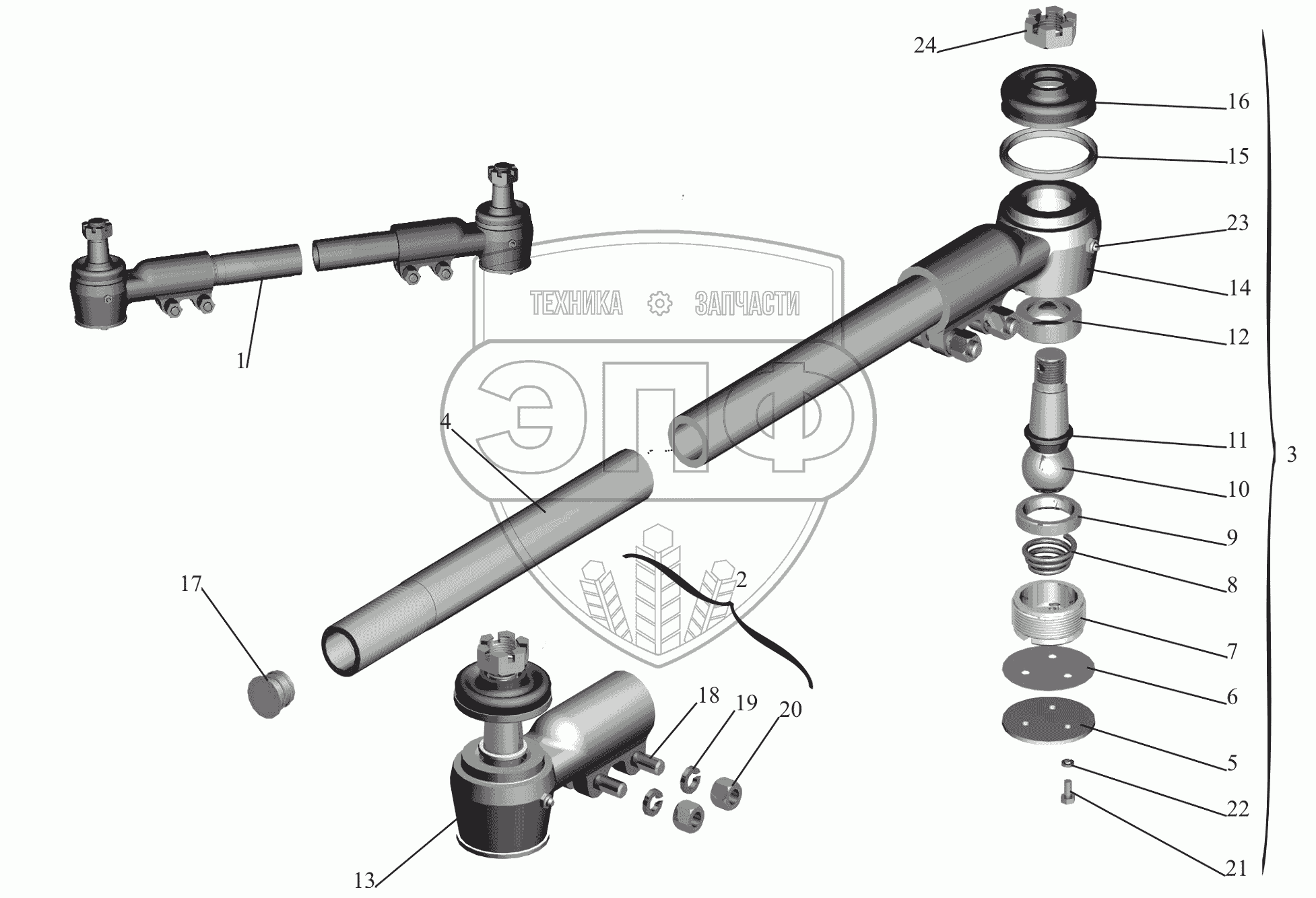 Каталог запасных частей к технике: МАЗ-650119. Тяга поперечная рулевая 64221-3003052