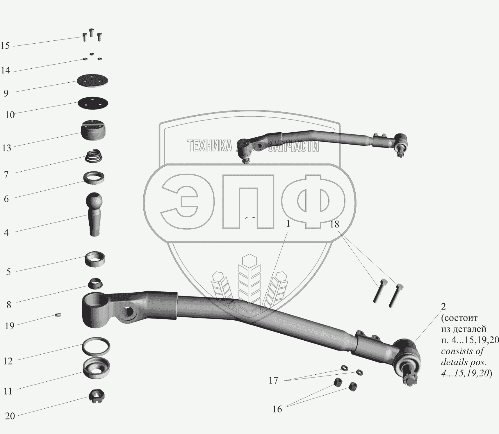 Каталог запасных частей к технике: МАЗ-650119. Тяга продольная 5440-3003010