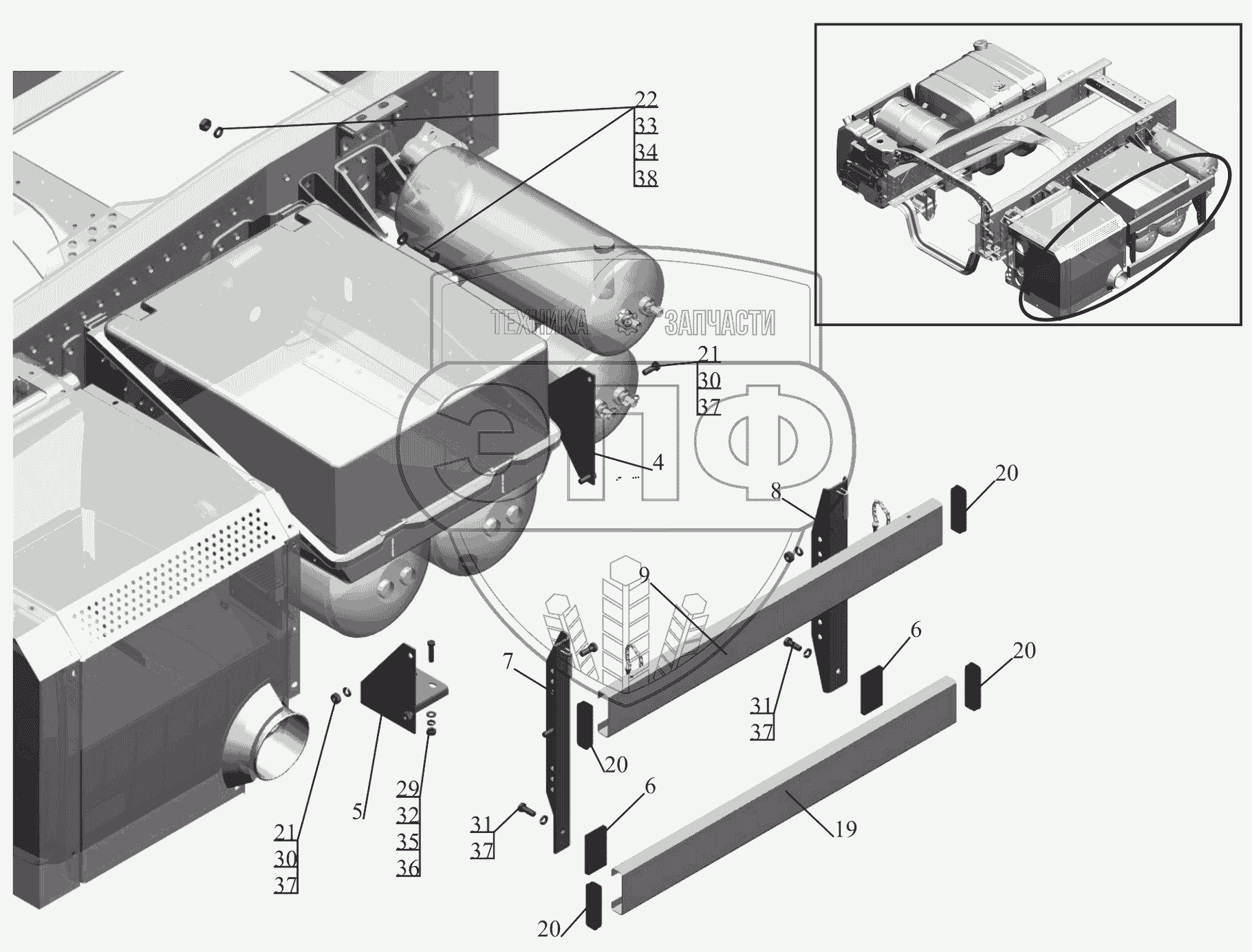 Каталог запасных частей к технике: МАЗ-650119. Установка бокового ограждения 650119-2800040