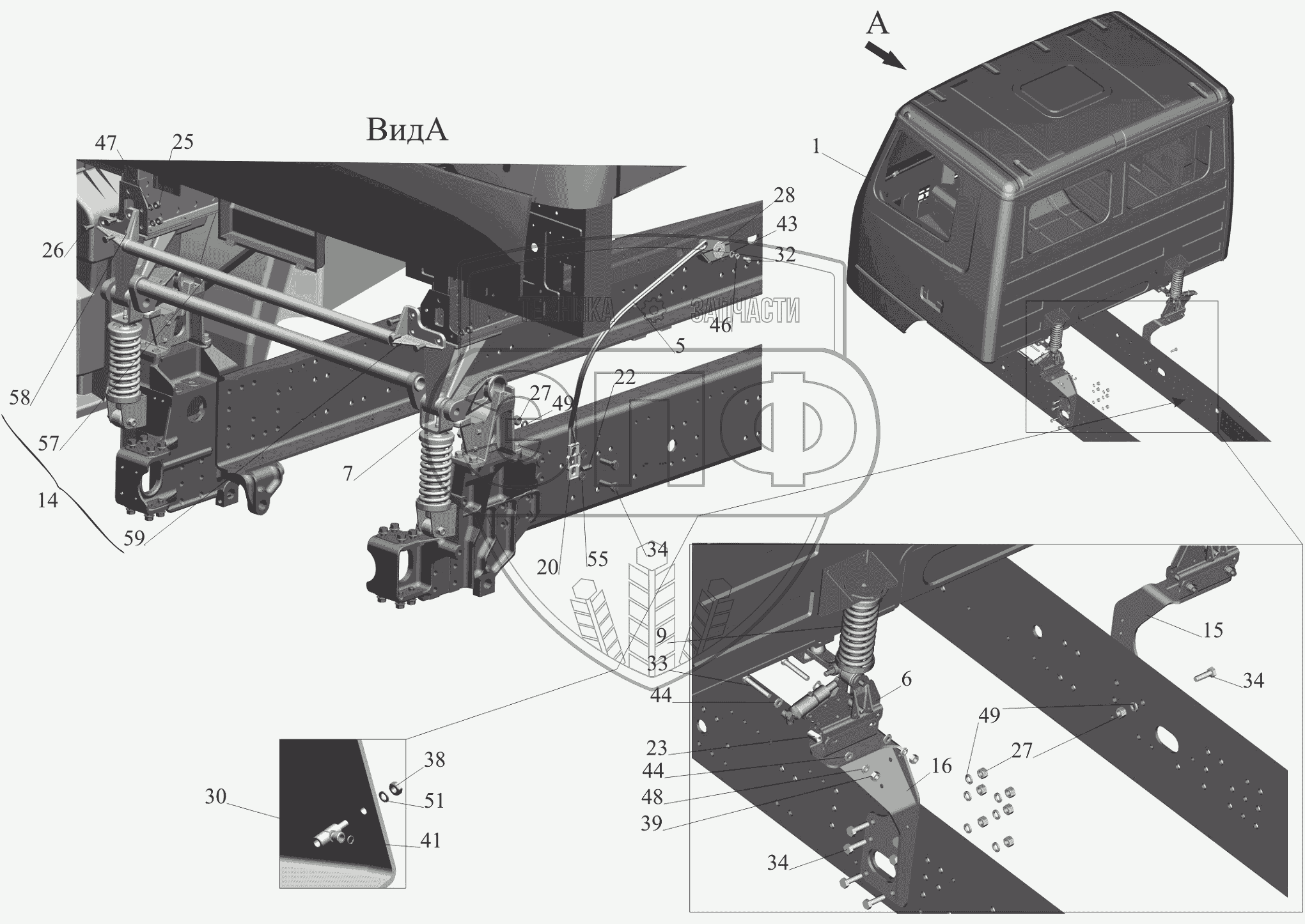 Каталог запасных частей к технике: МАЗ-650119. Установка кабины 650119-5000002-010
