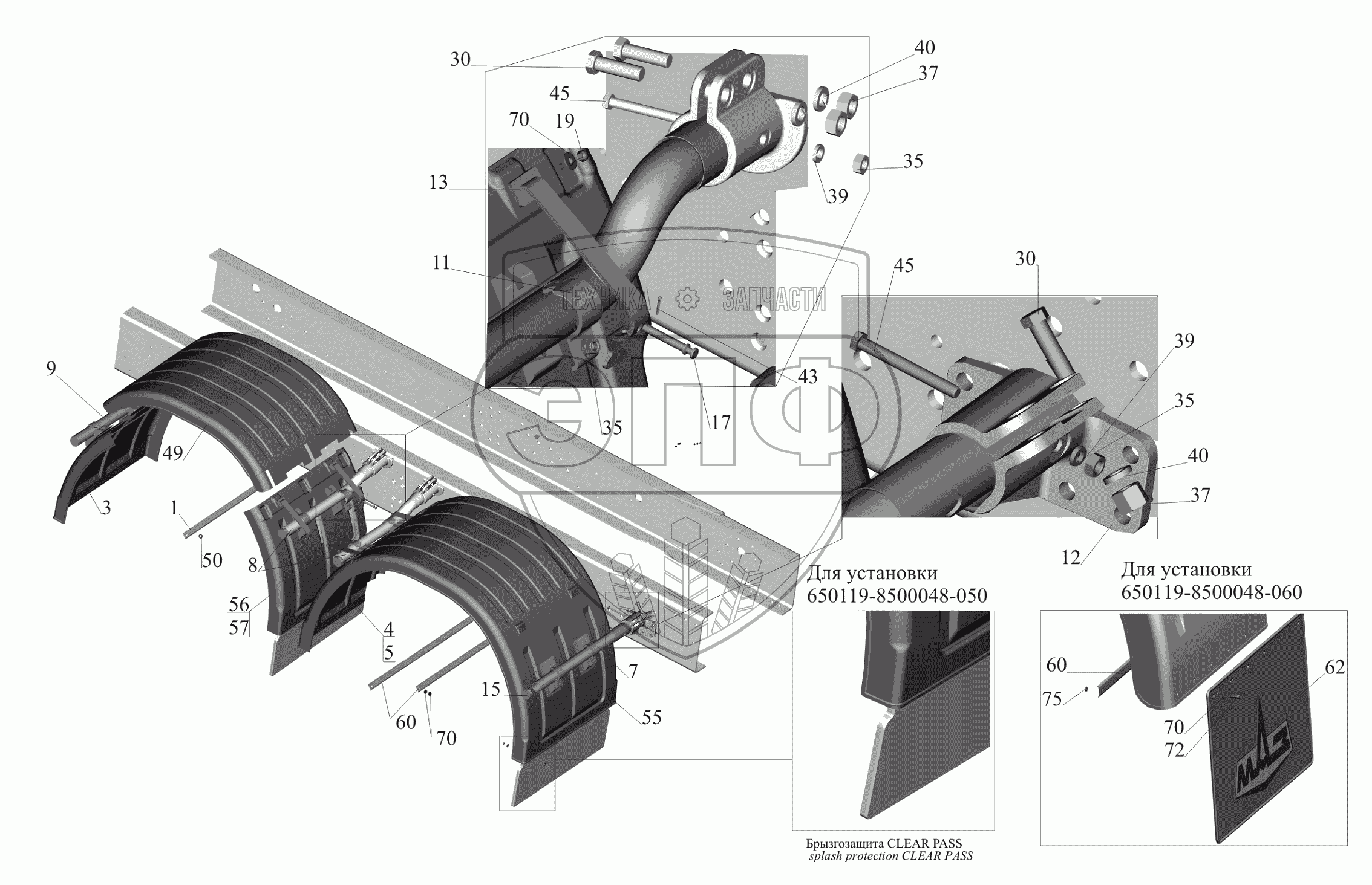 Каталог запасных частей к технике: МАЗ-650119. Установка крыльев