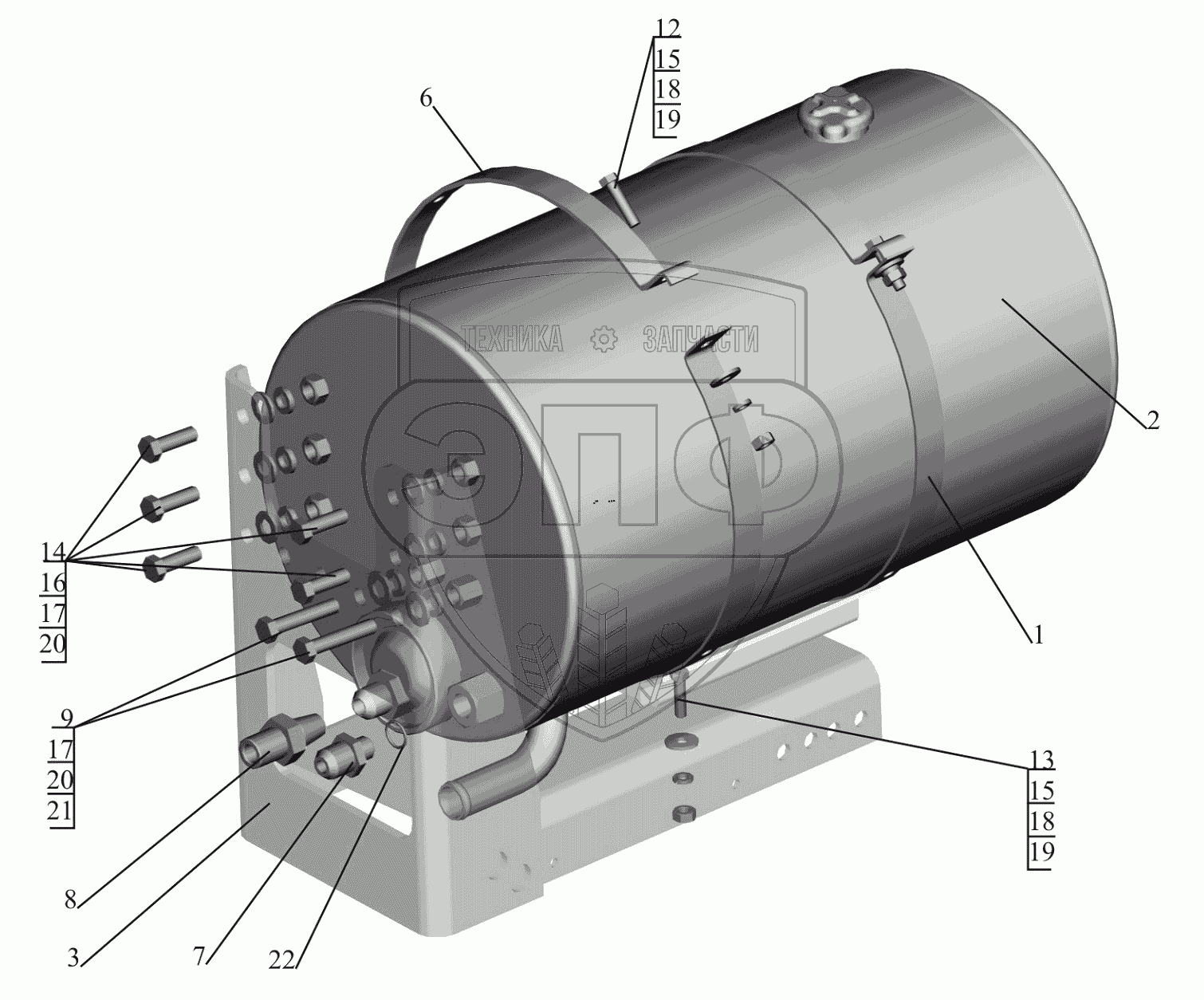 Каталог запасных частей к технике: МАЗ-650119. Установка масляного бака 650119-8600034