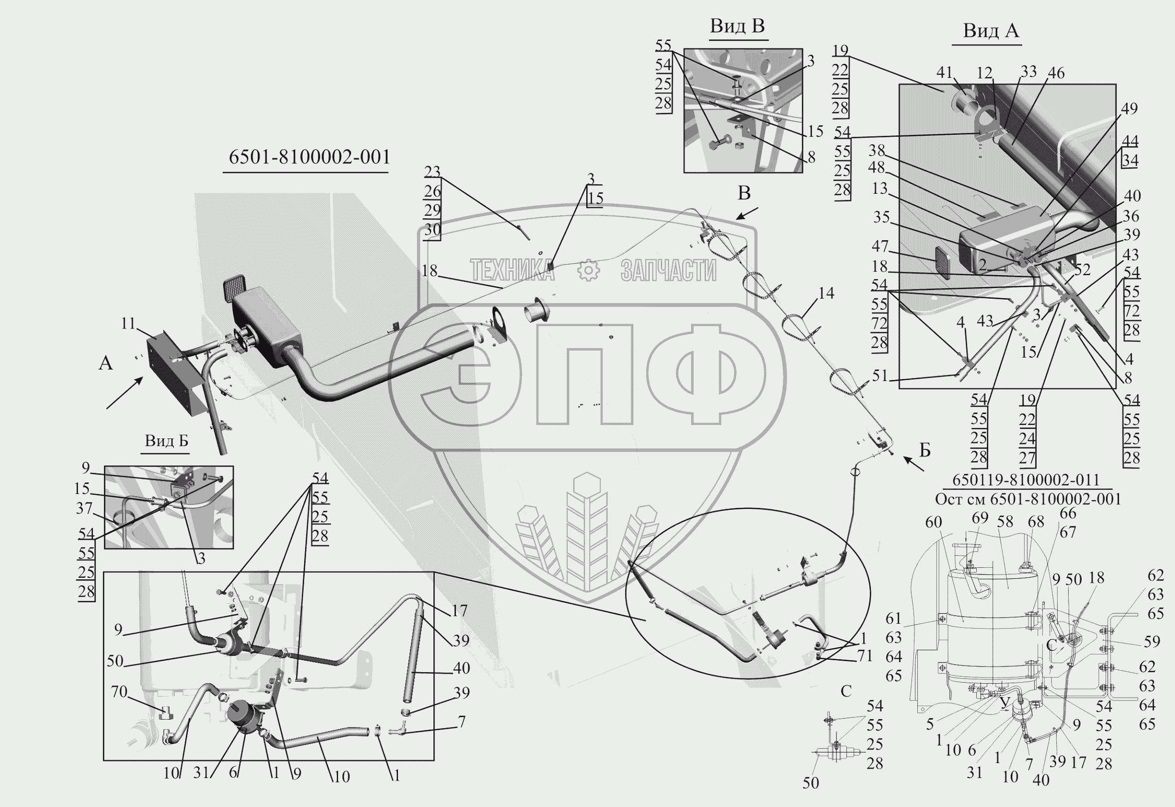 Каталог запасных частей к технике: МАЗ-650119. Установка независимого воздушного отопителя