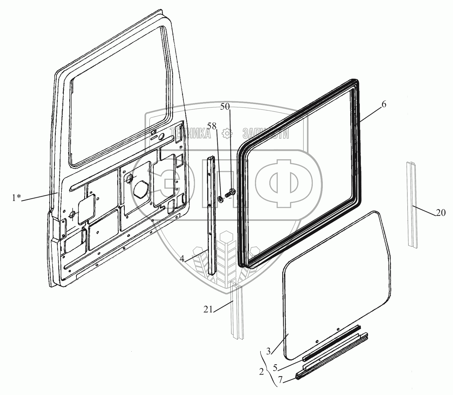 Каталог запасных частей к технике: МАЗ-650119. Установка опускного стекла